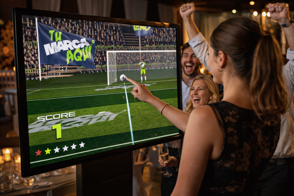 Además, con la opción con «base de datos» de clientes reales, el juego evoluciona más allá del momento: registra goles acumulados, rankings y actividad, permitiéndote identificar a tus clientes más activos.